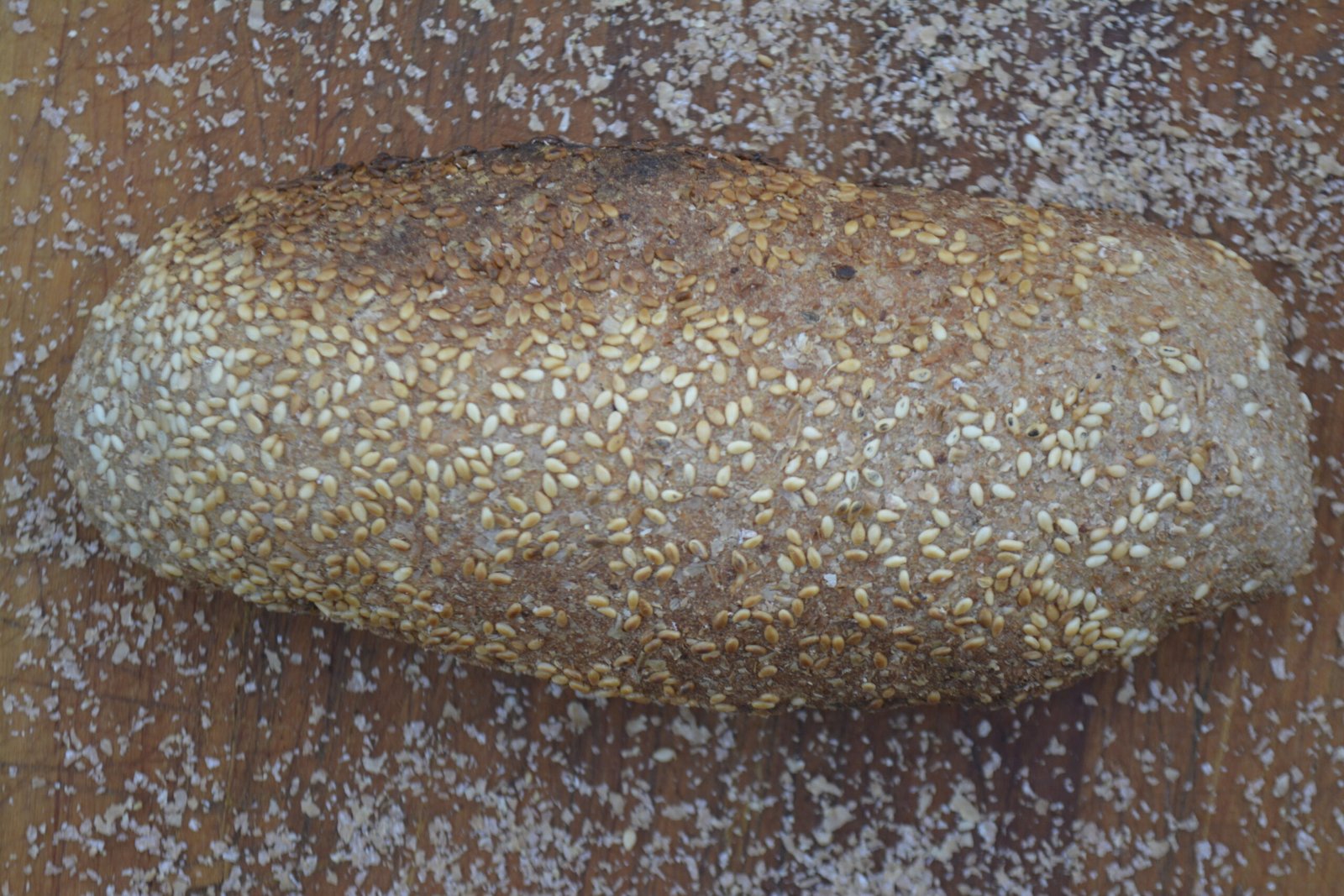 This bread is made just like our traditional Asrouni, but without the distinctive aroma of anise seeds. It’s a plain, wholesome version crafted from our freshly milled, organic 100% whole wheat flour, and coated with extra wheat bran and sesame seeds—true to the Asrouni tradition.