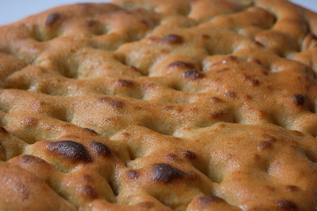 Traditional Genovese style, this focaccia features a thin, soft from inside, crispy crust and delicate flavor. Made simply with our freshly milled organic flour, water, salt, and organic extra virgin olive oil.